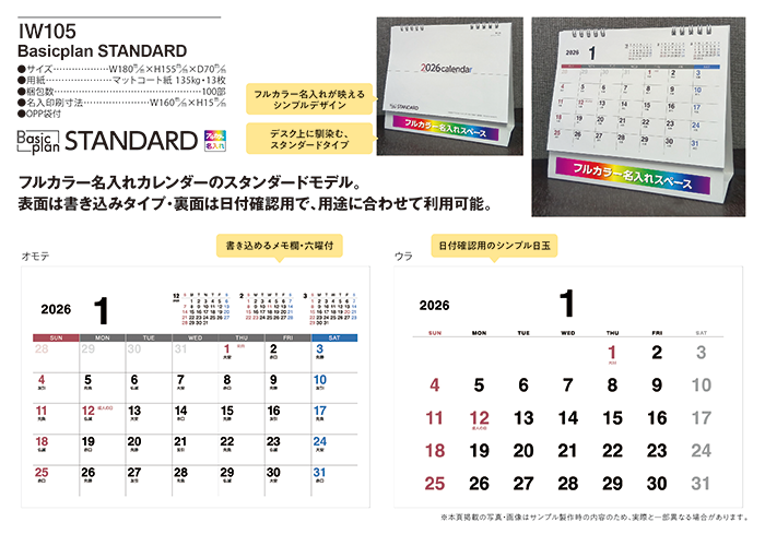 フルカラー名入れカレンダーのスタンダードモデル。