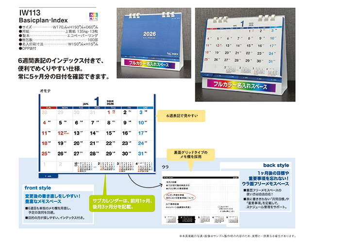 6週間表記のインデックス付きで、便利でめくりやすい仕様。