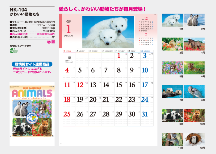 愛らしく、かわいい動物たちが毎月登場!