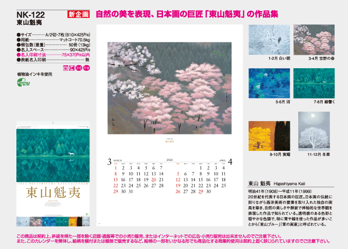 また、このカレンダーを解体し、絵柄を額付けまたは額無で販売するなど、絵柄の一部をいかなる形でも商品化する商業的使用は契約上固く禁じられていますのでご注意下さい。