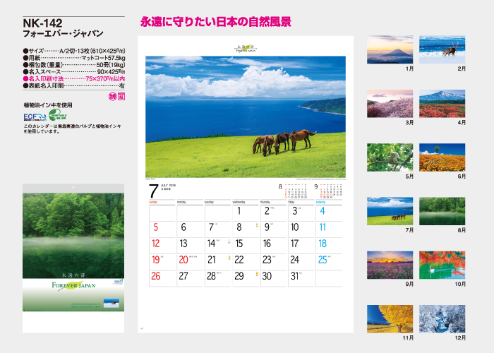 このカレンダーは無塩素漂白パルプと植物油インキを使用しています。