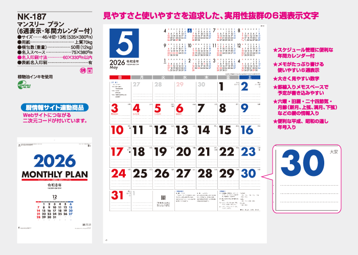 見やすさと使いやすさを追求した、実用性抜群の6週表示文字