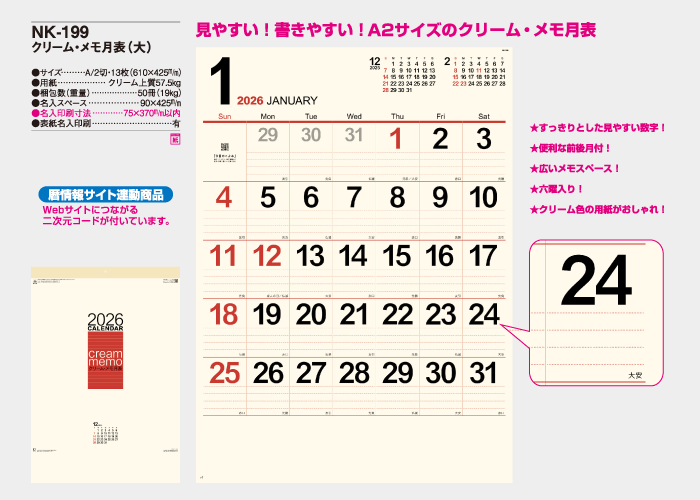 見やすい!書きやすい!A2サイズのクリーム・メモ月表