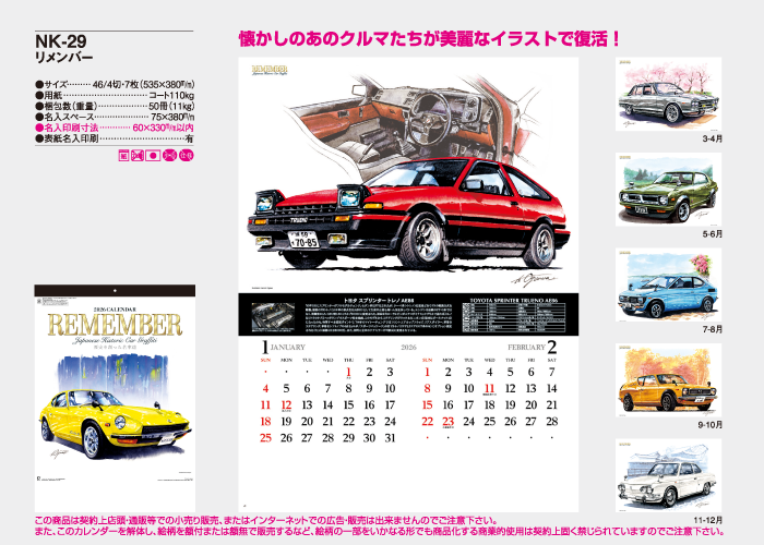 また、このカレンダーを解体し、絵柄を額付けまたは額無で販売するなど、絵柄の一部をいかなる形でも商品化する商業的使用は契約上固く禁じられていますのでご注意下さい。