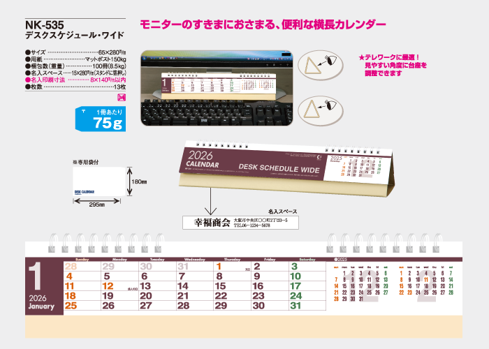 ■名入れスペース:15×280m/m(スタンドに箔押し)