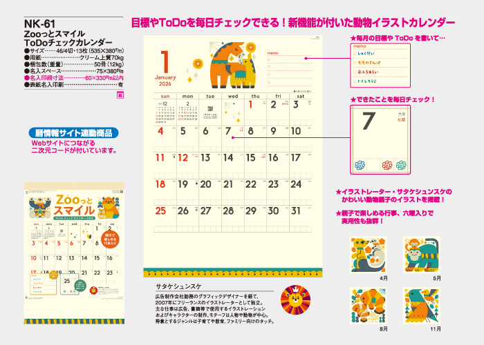 目標やToDoを毎日チェックできる!新機能が付いた動物イラストカレンダー