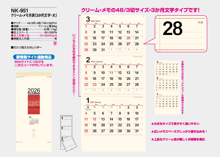 いつも2か月先を表示できるミシン目加工入り!