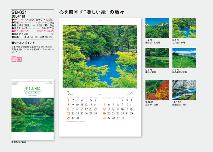 日本の豊かな自然を象徴する緑の映像集。環境保護のアピールと癒しのインテリアカレンダー。