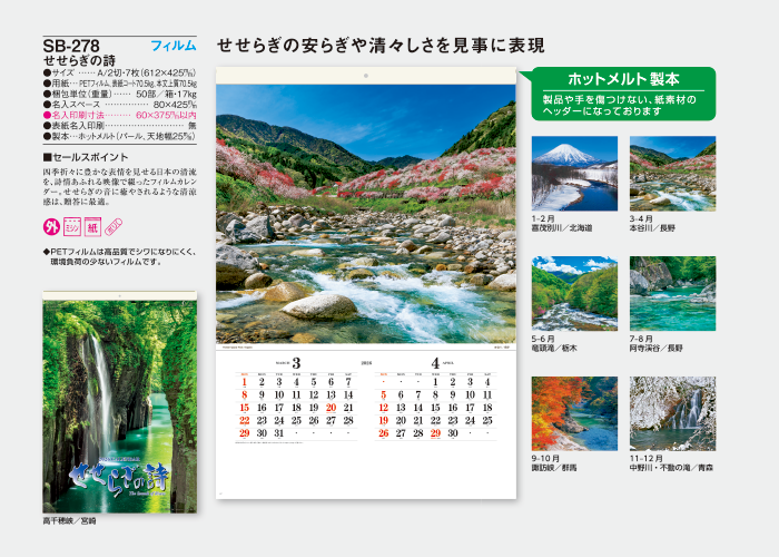 四季折々に豊かな表情を見せる日本の清流を、詩情あふれる映像で綴ったフィルムカレンダー。せせらぎの音に癒やされるような清涼感は、贈答に最適。