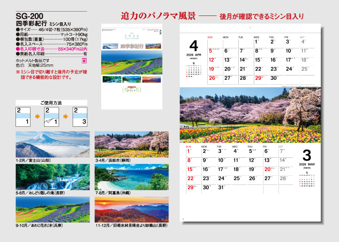 ミシン目で切り離すと後月の予定が確認できる機能的な設計です。