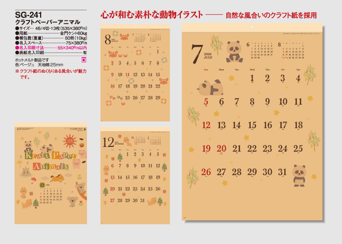 心が和む素朴な動物イラスト ― 自然な風合いのクラフト紙を採用