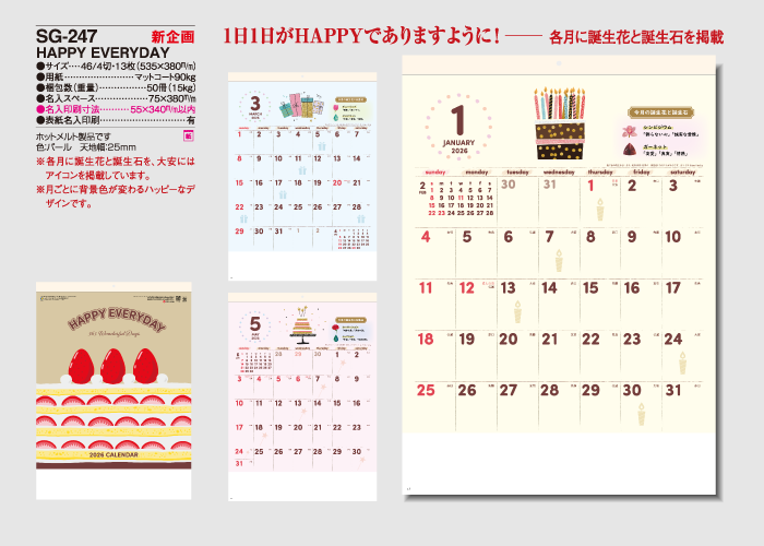 1日1日がHAPPYでありますように! ― 各月に誕生花と誕生石を掲載