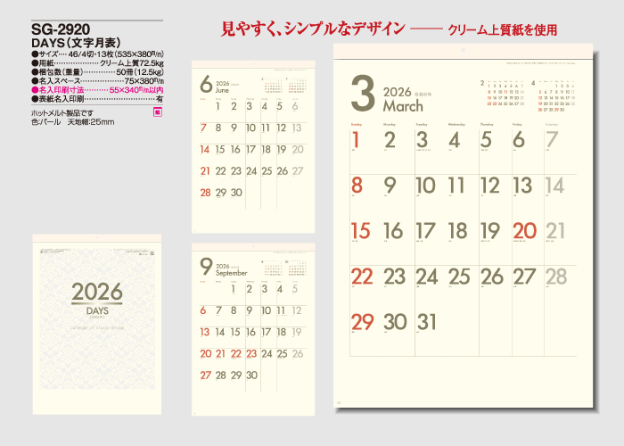 見やすく、シンプルなデザイン ― クリーム上質紙を使用