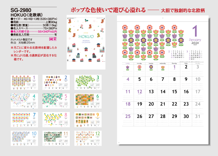 月ごとに変わる北欧柄を配置したカレンダーです。
