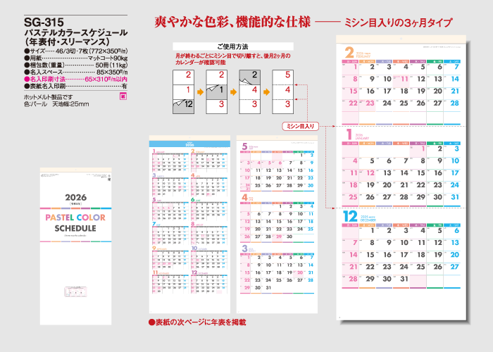 爽やかな色彩、機能的な仕様 ― ミシン目入りの3ヶ月タイプ