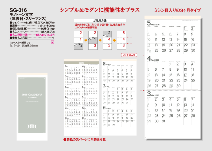 シンプル&モダンに機能性をプラス ― ミシン目入りの3ヶ月タイプ