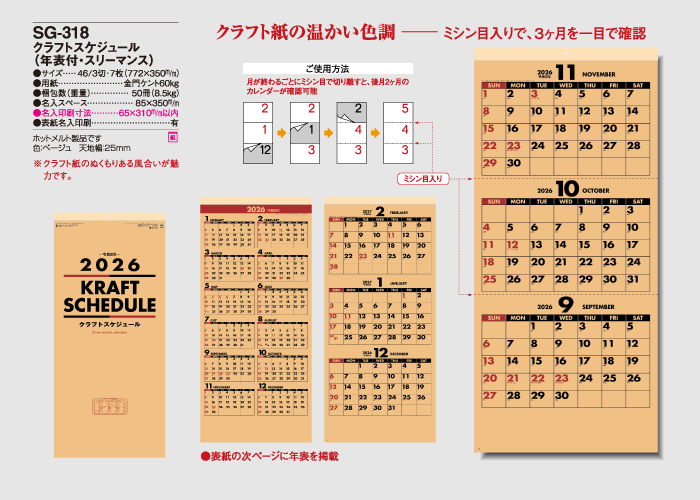 クラフト紙で温かい色調 ― ミシン目入りで、3ヶ月を一目で確認
