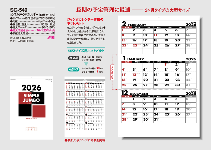 長期の予定管理に最適 ― 3ヶ月タイプの大型サイズ