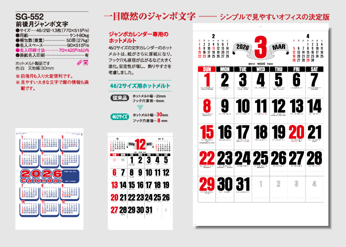 見やすい大きな文字で暦の情報も満載です。