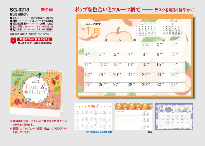 刺繍風のフルーツイラストと鮮やかな色味がデスクを明るく彩ります。