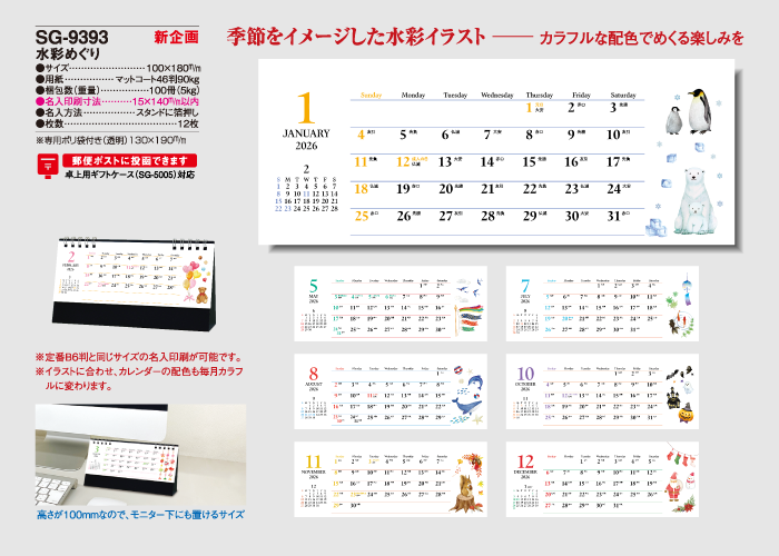 イラストに合わせ、カレンダーの配色も毎月カラフルに変わります。