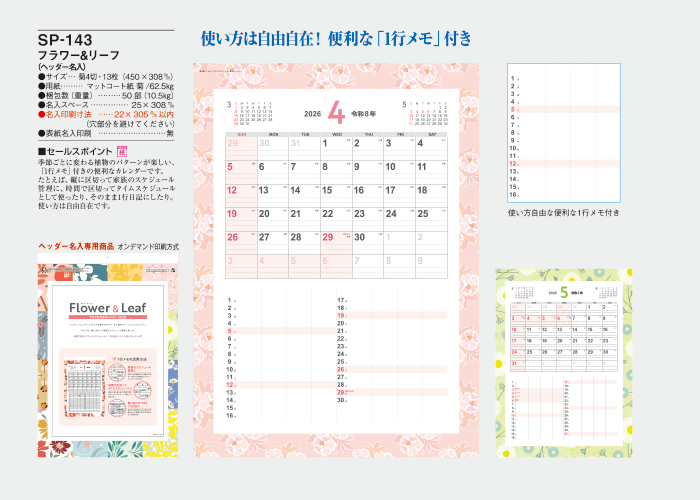 µ¨Àᤴ¤È¤ËÊѤï¤ë¿¢Êª¤Î¥Ñ¥¿¡¼¥ó¤¬³Ú¤·¤¤¡¢¡Ö1¹Ô¥á¥â¡×ÉÕ¤¤ÎÊØÍø¤Ê¥«¥ì¥ó¥À¡¼¤Ç¤¹¡£