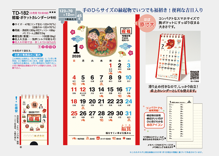 手のひらサイズの縁起物でいつでも福招き!便利な吉日入り