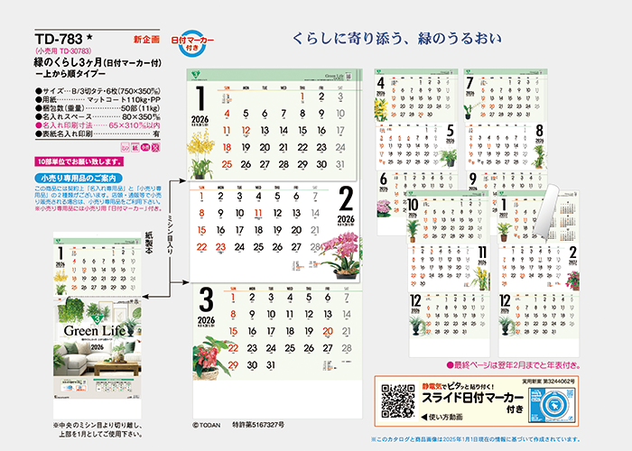 ※中央のミシン目より切り離し、上部を1月としてご使用下さい。